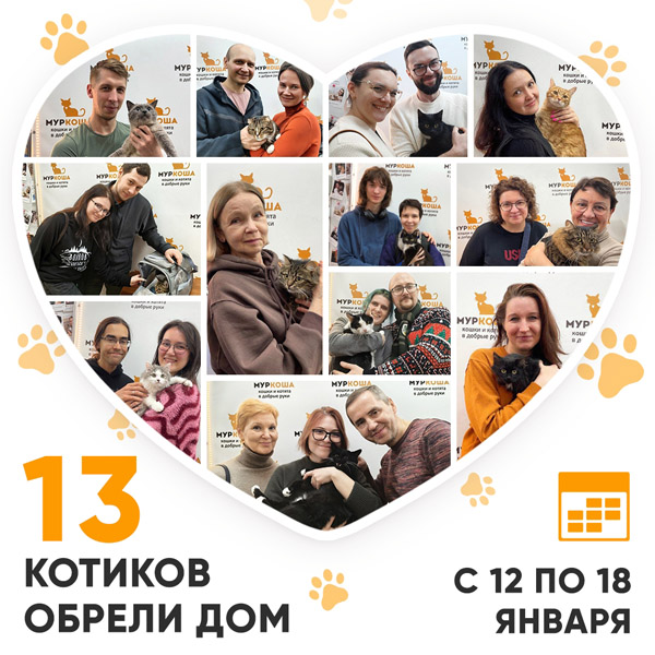 Друзья, снова мы делимся с вами итогами недели! Сегодня мы публикуем результаты работы нашего Центра с 12 по 18 января 2026г. За прошедшую неделю домашними стали 13 котиков!